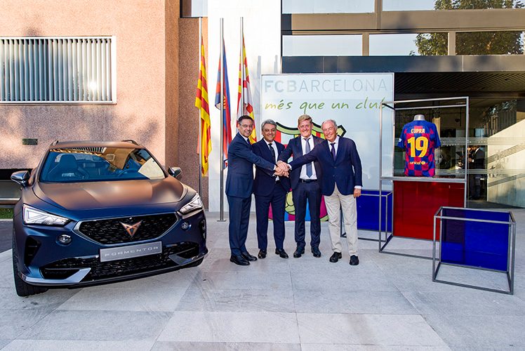 Luca de Meo, presidente de SEAT y del Consejo de Administración de CUPRA, y Josep Maria Bartomeu, presidente del FC Barcelona, se han reunido hoy en el Camp Nou, antes del primer partido de la Liga 2019-2020 que el Barça ha disputado en casa. “Esta innovadora alianza con uno de los clubes de fútbol más relevantes del mundo demuestra nuestra apuesta en firme por la marca CUPRA, así como nuestro compromiso con el futuro de la movilidad en Barcelona. Esta colaboración con una entidad universal como es el FC Barcelona, que cuenta con más de 340 millones de seguidores, nos permitirá además fortalecer nuestra estrategia de globalización”, afirma de Meo.