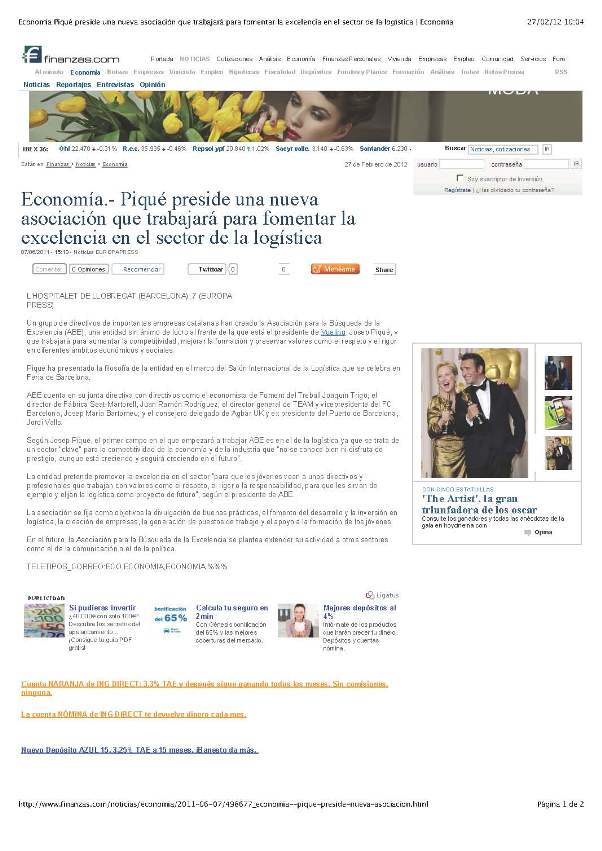 Fuente: Finanzas.com. Fotos propias Piqué preside una nueva asociación que trabajará para fomentar la excelencia en el sector de la logística Joaquín TrigoJordi VallsJosep Mª BartomeuJosep PiquéJuan Ramón RodríguezCompartir este artículo:LinkedInTwitter autor Comunicación ABE Documentación relacionadaPedro Nueno: Humildando07/10/2025Josep Lluís Rovira: La inmadurez colectiva07/10/2025Newsletter 20 – junio 202509/07/2025Michael Sandel: “Si los mercados definen lo que es valioso se crea un vacío moral que llena la religión y el nacionalismo”26/06/2025Xavier Marcet: Un referente generoso y de risa franca26/06/2025¿Negociar “por obligación legal”?26/06/2025